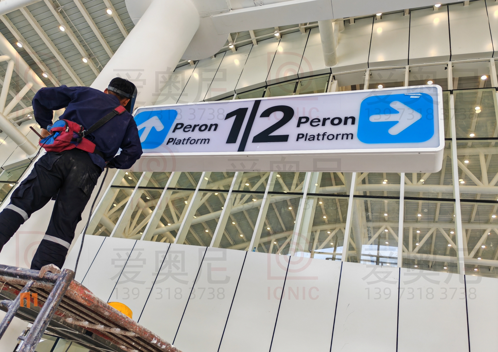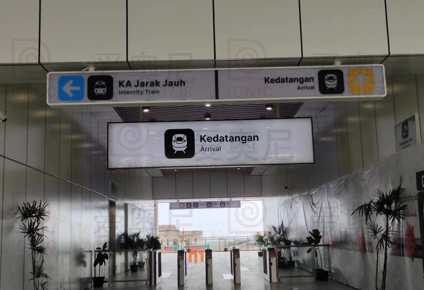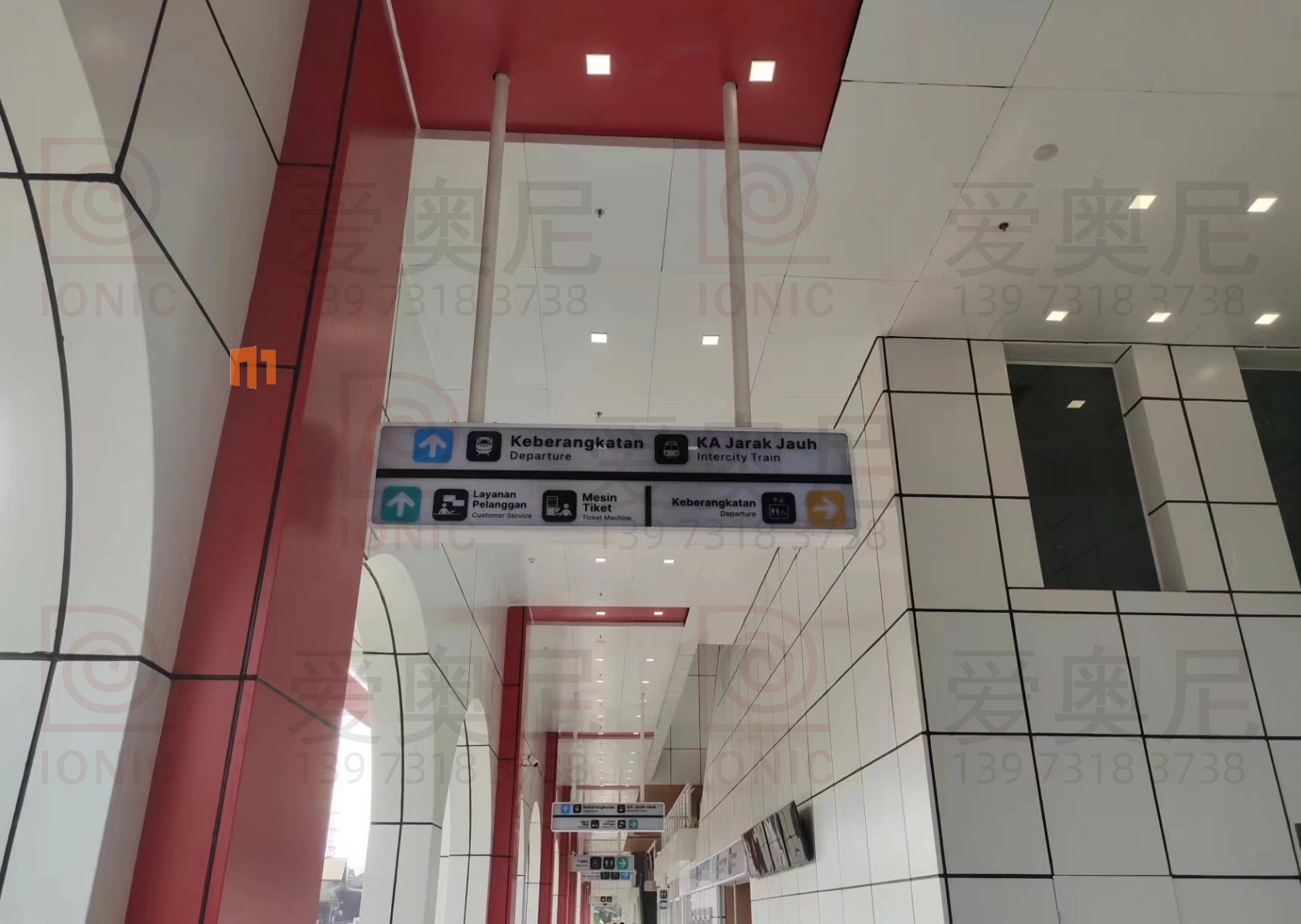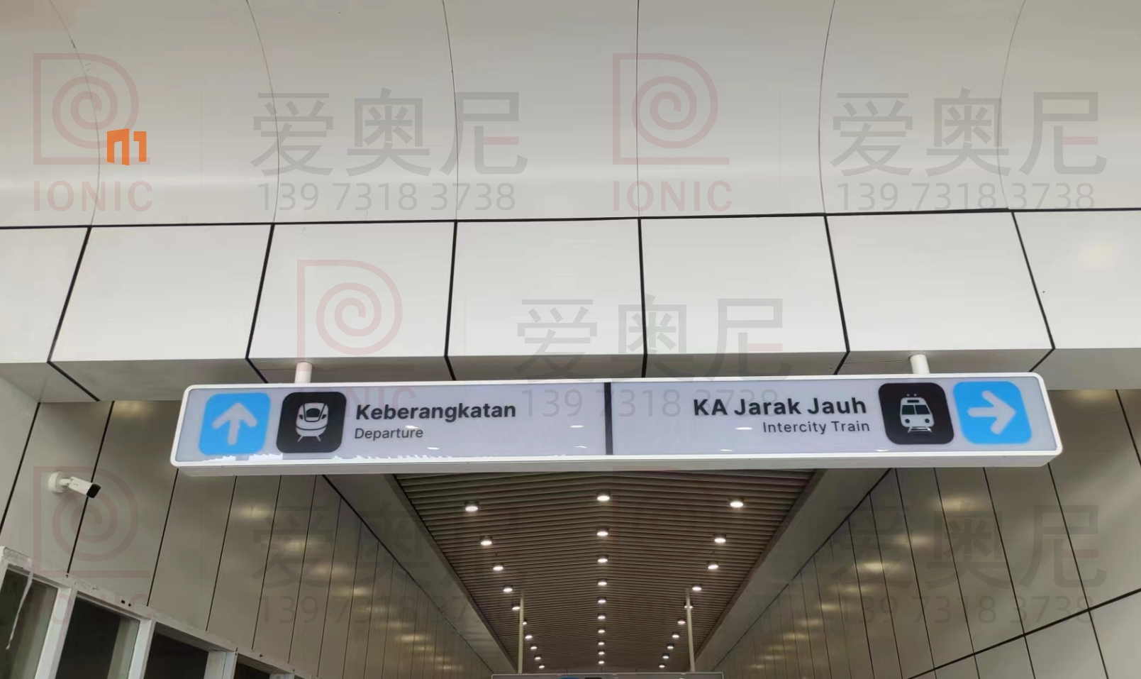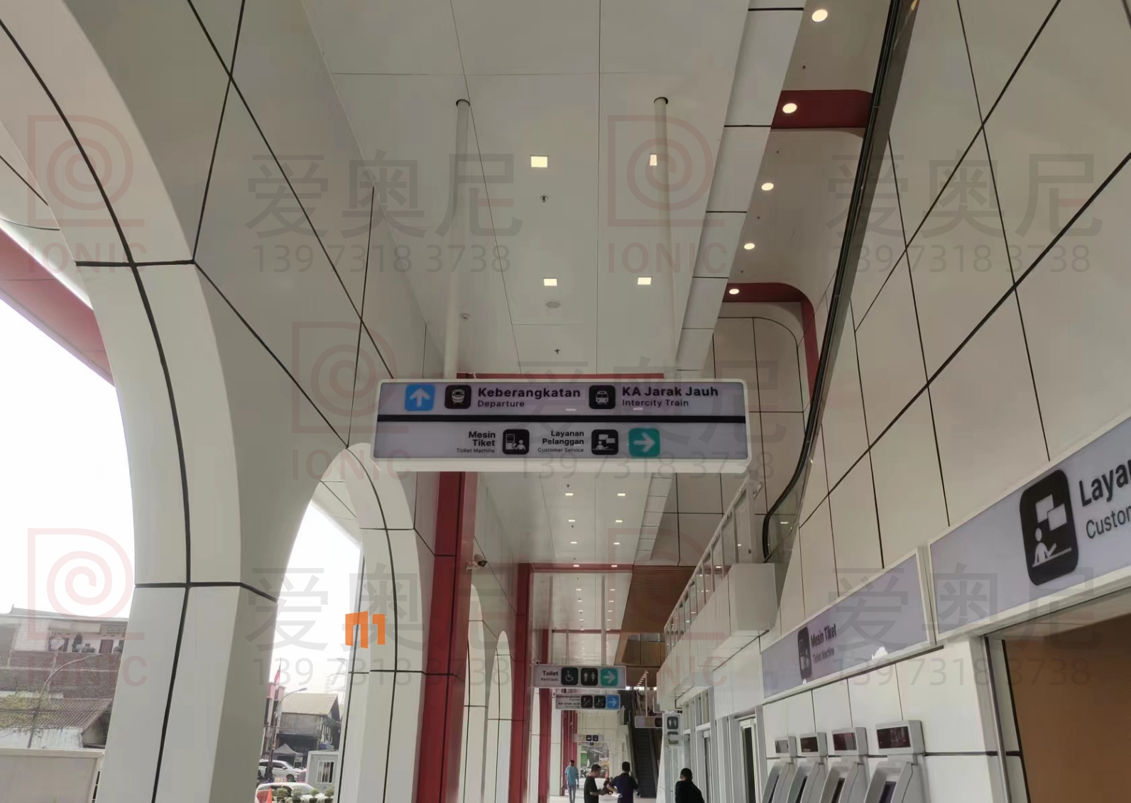 2023年9月7日,東南亞第一條高速鐵路雅萬高鐵正式開通運營。雅萬高鐵是東南亞第一條高速鐵路,也是中國高鐵首次全系統(tǒng)、全要素、全生產鏈在海外落地的高速鐵路項目;雅萬高鐵西起雅加達的哈利姆站,東至萬隆的德卡魯爾站,共設有4座車站,正線長142.3KM,設計時速為350km/h,最高運營速度也可達到350km/h。愛奧尼為雅萬高鐵四座車站中的帕達拉郎站提供全站的靜態(tài)標識生產和安裝指導服務工作,本項目時間緊任務重,公司依托多個的車站靜態(tài)標識項目的服務經驗,在最短的時間內保質保量的完成了生產工作以及現場安裝指導服務,并獲得業(yè)主的高度認可。
